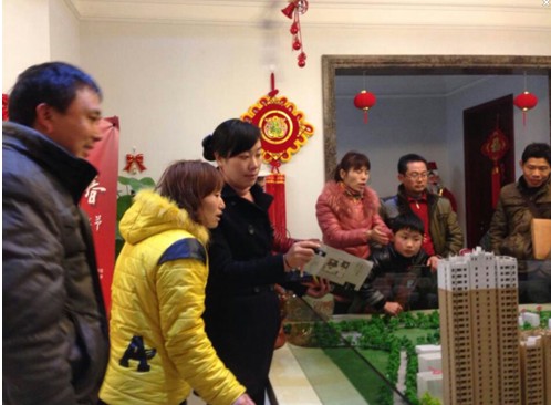 現(xiàn)場置業(yè)顧問給客戶耐心的講解項目
