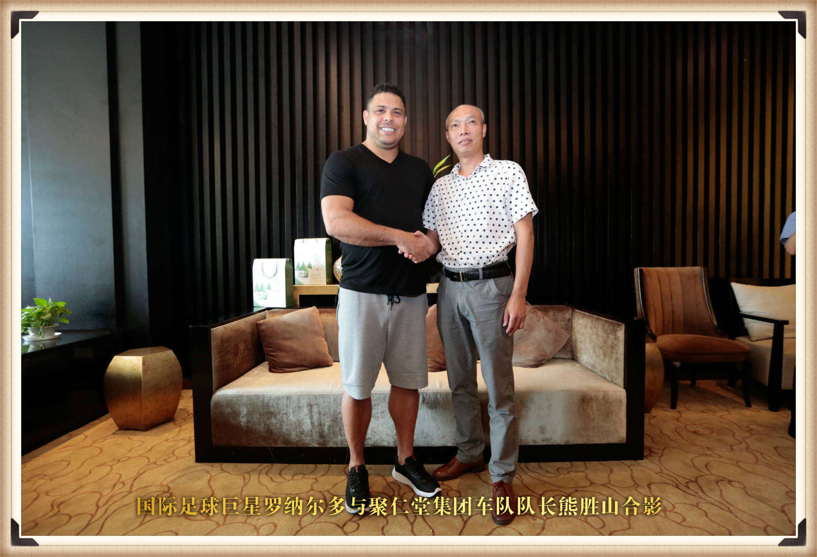 國際足球巨星羅納爾多與聚仁堂集團車隊隊長熊勝山合影