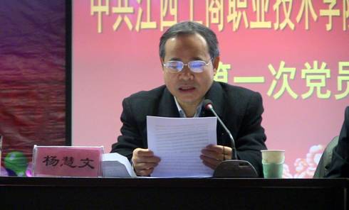 會議開始后,熊慶任宣讀了教育工委《關(guān)于成立中共江西工商職業(yè)技術(shù)學(xué)院委員會的批復(fù)》,同意成立中共中共江西工商職業(yè)技術(shù)學(xué)院委員會。隨后,楊慧文代表省委教育工委、省教育廳社辦黨委對對本次大會的召開表示祝賀,對工商學(xué)院近幾年建設(shè)和發(fā)展所取得的成績和黨建工作給予了充分肯定。他要求學(xué)院以黨委成立為契機,認(rèn)真貫徹執(zhí)行中央、省委和省教育工委的有關(guān)文件以及歷次高校會議精神,不斷加強和改進(jìn)黨建工作,努力探索民辦高校黨建工作的新路子;要緊密結(jié)合形勢開展思想政治教育,提高全體黨員和師生員工綜合素質(zhì);要著力維護(hù)學(xué)校校園和諧穩(wěn)定,牢牢把握黨對高校意識形態(tài)工作的領(lǐng)導(dǎo)權(quán)和主動權(quán);要積極做好群團(tuán)組織的領(lǐng)導(dǎo)工作,努力推進(jìn)學(xué)校各項事業(yè)的發(fā)展,使學(xué)校辦出特色,辦出水平。