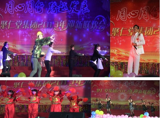 “難忘今宵,難忘今宵,無論天涯與海角,聚仁堂人同懷抱……”當這熟悉而優美的旋律響起,歷時3個半小時的聚仁堂集團2013年迎新聯歡會圓滿落幕,但不落的是全體聚仁堂人澎湃的激情。本次聯歡會的所有節目均有集團各單位的員工們自編自導自演,精彩的演出既展現了聚仁堂人多才多藝、積極向上的良好精神風貌,也展現了集團“聚仁士 獻仁愛”的真正魅力。