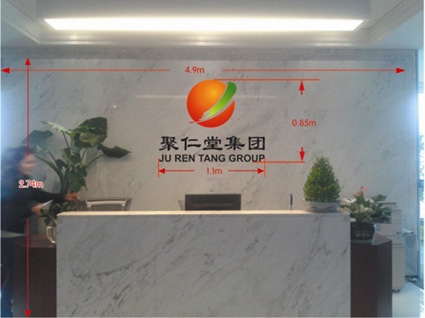 首先,電梯出口的形象墻設(shè)計至關(guān)重要,是集團對外展示的第一個窗口,此外,這一區(qū)域的設(shè)計還應(yīng)起到一個指引的作用,告訴來賓集團所處的方位。所以,集團文宣部對此處的風(fēng)格定位以簡單大方,采用豎式的LOGO,并下面擺一些盆栽作為襯托。辦公區(qū)前臺的布置將直接影響來賓對集團公司的整體印象,此處設(shè)計應(yīng)當大氣,采用的也是豎式的LOGO設(shè)計方案,與電梯出口處的設(shè)計相統(tǒng)一,但在材質(zhì)上將采用有厚度的亞格力板,LOGO設(shè)計將采用噴漆的形式表現(xiàn)出紅綠色漸變的感覺,可以使整體感覺比較立體,既有厚度,顏色上也有變化,與前臺灰色紋理大理石的墻面形成對比。