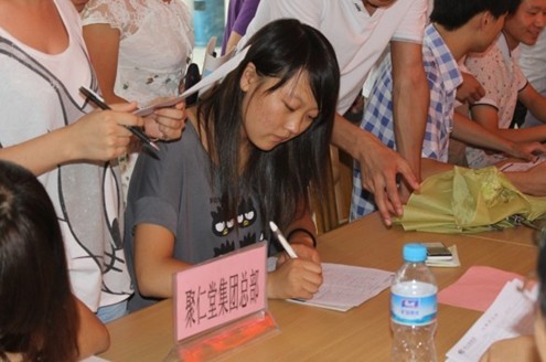 有了上午的體驗,在下午的招聘現場,更是人頭攢動。學生們熱情高漲,多家單位的招聘人員被大家團團圍住。前來參加招聘會的同學手中幾乎都拿了多份簡歷,他們認真地詢問與自己專業對口的崗位并慎重地將簡歷投向心儀的企業。經濟貿易系的張珍同學說:“這次學院舉行實習招聘推介會,為我們提供了大量實習崗位,對我們來說是一次選擇就業極好的機會。參加招聘會的招聘,對我們也是一次就業招聘的實際鍛煉,我一共投了3份資料,特別看中聚仁堂集團總部的財務審計助理崗位,想去試試?!?/span>