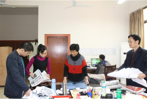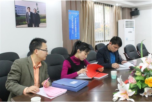 檢查小組與江西工商職業技術學院領導針對文宣工作進行交流
