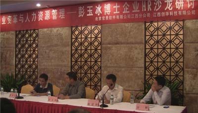 ? 9月16日晚,由宏景軟件有限公司主辦的“企業(yè)變革與人力資源”研討會(huì)在南昌召開,集團(tuán)總經(jīng)理劉堅(jiān)、集團(tuán)常務(wù)副總兼高級(jí)管理顧問方輝受邀參加會(huì)議,并作為特約嘉賓參與現(xiàn)場(chǎng)討論。