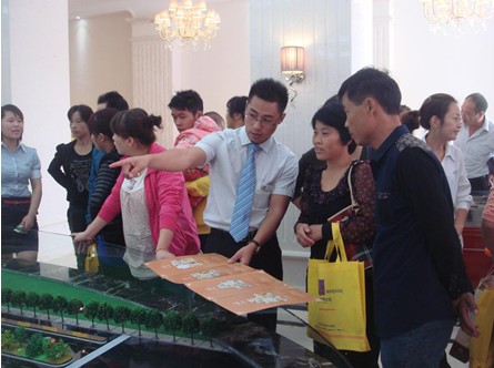 眾多客戶圍著沙盤了解項目情況